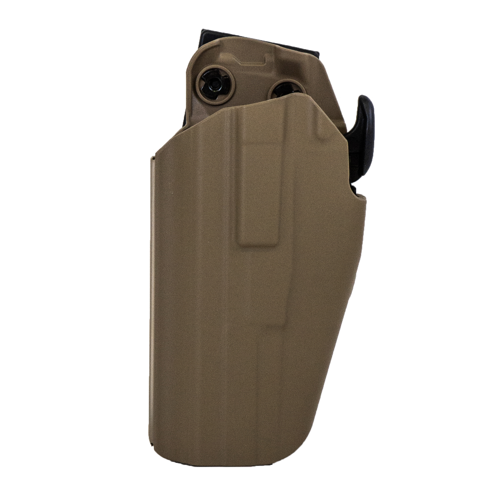 The Model 579 GLS™ Pro-Fit brings the unique GLS™ (Grip Lock System) and SafariSeven™ together in a holster designed to fit a wide variety of guns. The Pro-Fit™ is customizable and adjusts to securely fit over 100 firearms. The 579 also features the GLS™, an innovative technology that automatically secures the weapon when holstered and releases it upon application of the middle finger with a standard shooting grip for a more intuitive and safer release. The holster body is constructed with SafariSeven™, a lightweight, state-of-the-art nylon blend is completely non-abrasive to a gun’s finish, tolerant of extreme high and low temperatures, and easy to maintain. This holster features belt clip which easily detaches from belt and fits up to 2.25" belt widths.