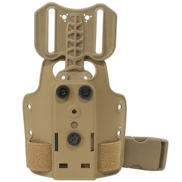 6004-25-2This Single Strap Leg Shroud with Drop Flex Adapter (DFA) combination is an add-on part for Safariland® holsters. The DFA replaces the standard vertical leg strap and raises the height of the system on the thigh for increased stability. It accepts belt widths between 2” - 2.25" (50 mm - 58 mm). The thigh plate has mounting holes for attachment of 2 Safariland® tactical accessories. The leg shroud features a silicone strap for non-slip traction. Offered in Black, FDE Brown, OD Green, or Foliage Green.